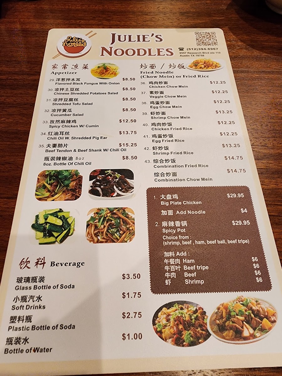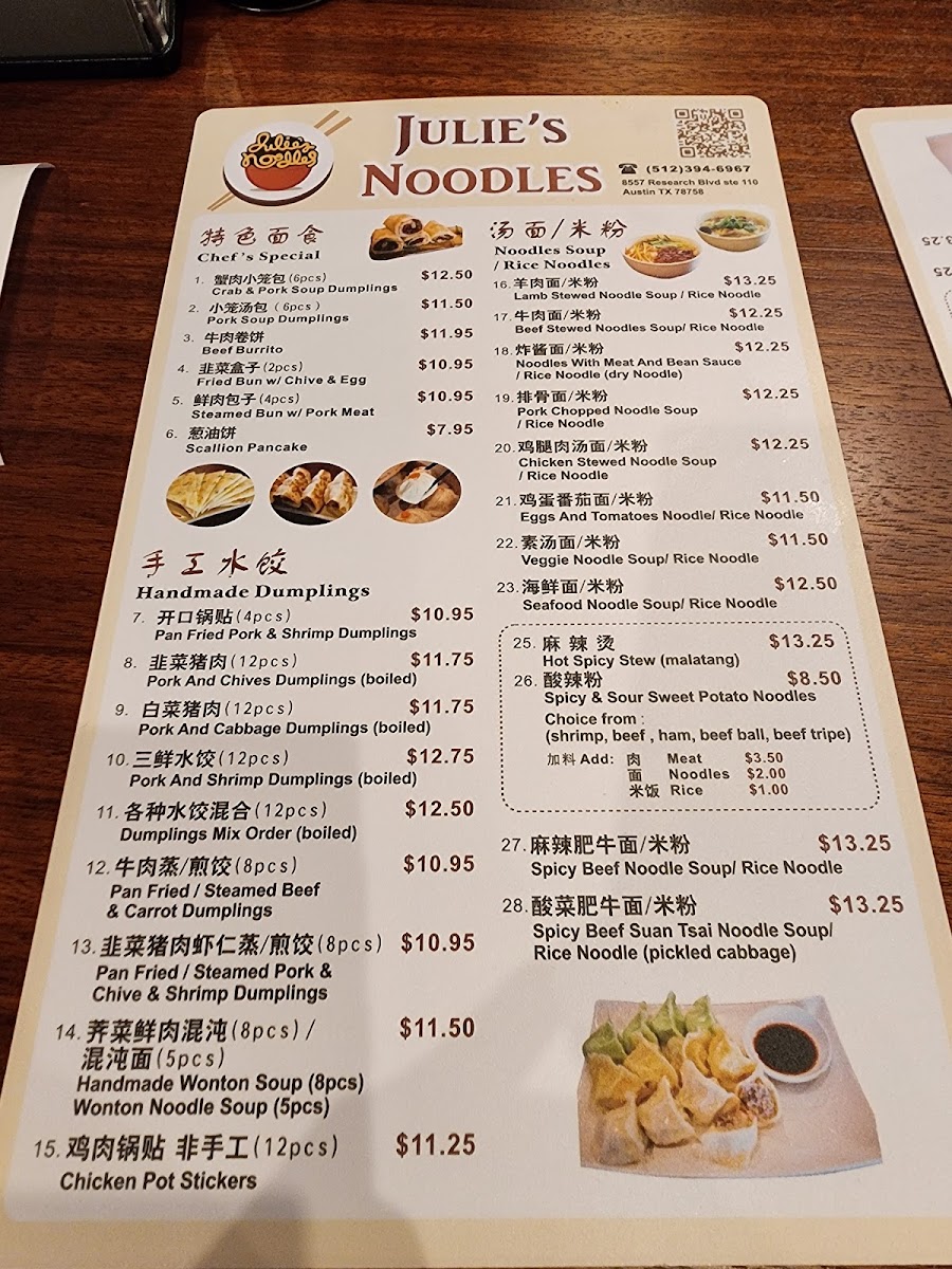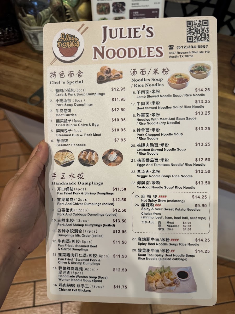 Welcome to Julie's Noodles, a hidden gem located at 8557 Research Blvd #110, Austin, TX 78758, that promises an authentic taste of Chinese cuisine bursting with flavor and character. As you step through the doors, you are instantly enveloped in a warm and inviting atmosphere — the aroma of perfectly seasoned dishes wafts through the air, enticing your senses and whetting your appetite.